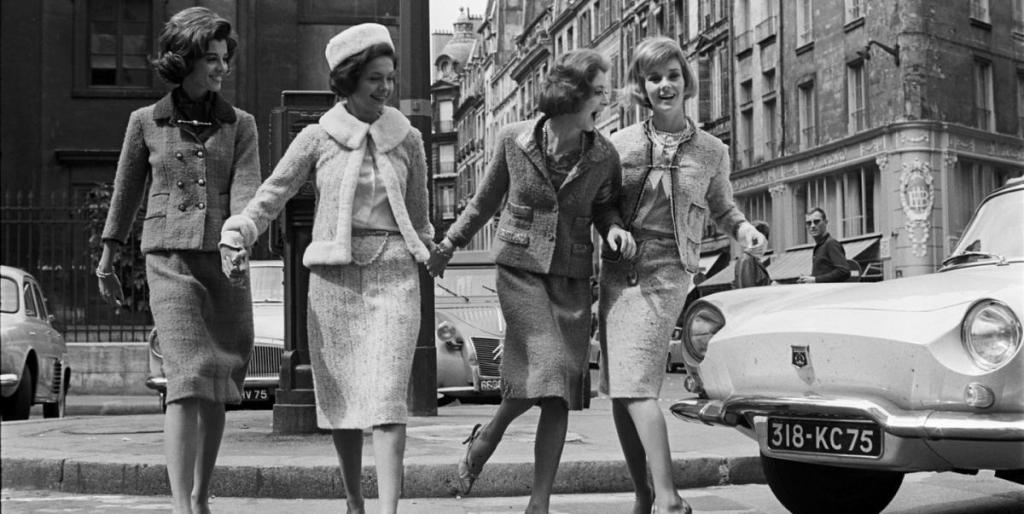 Coco Chanel marquera l’époque en 1954 avec son tailleur. Le modèle mythique à l’esprit androgyne et moderne est en adéquation avec la jeune génération.